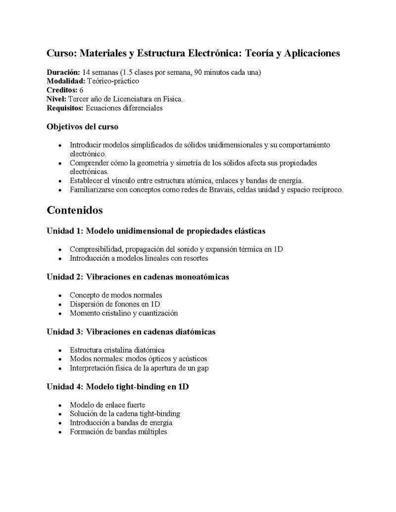 CS03074-1 Materiales y Estructura Electrónica: Teoría y Aplicaciones 2025, Segundo Semestre