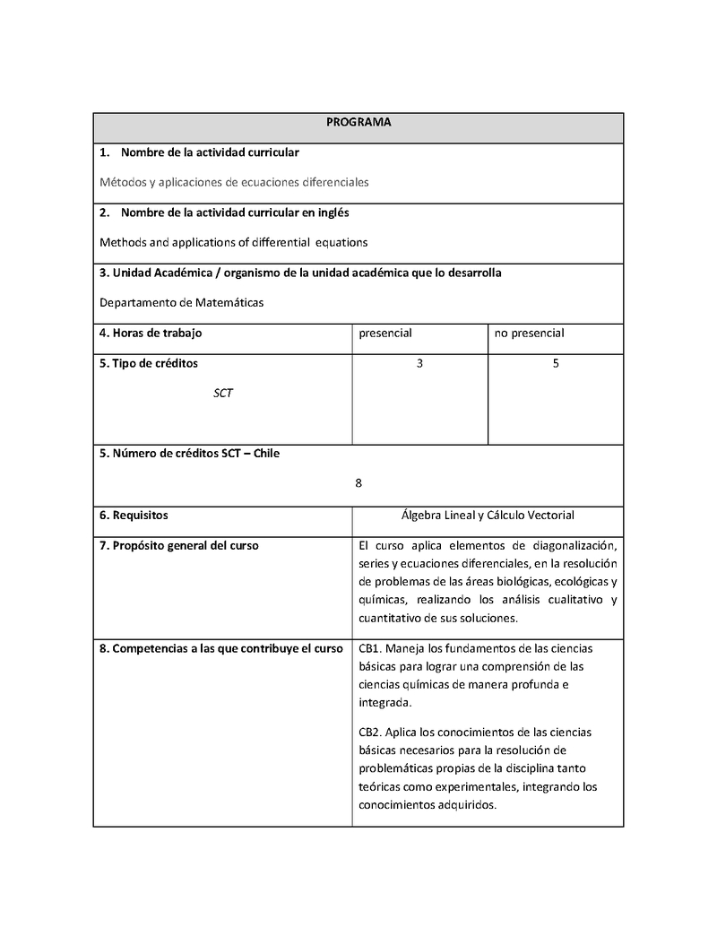 MCLQ410-1 Métodos y Aplicaciones de las Ecuaciones Diferenciales 2025, Segundo Semestre