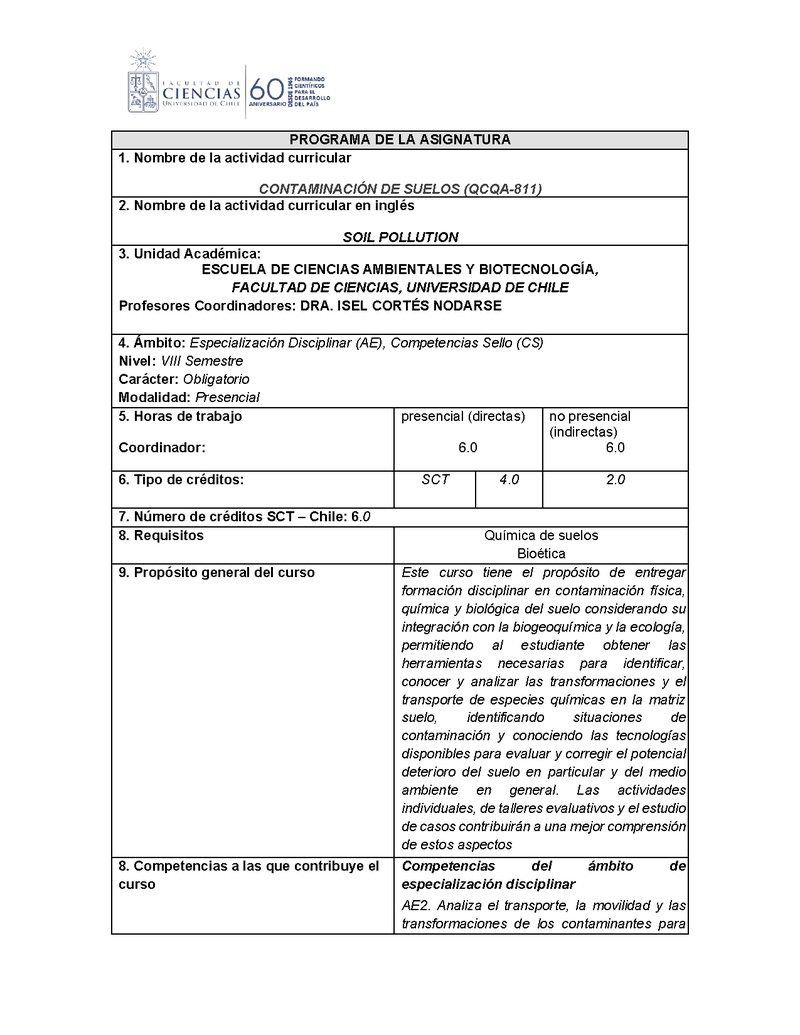 | Descripción | Programa de la asignatura Contaminacion de Suelos | |