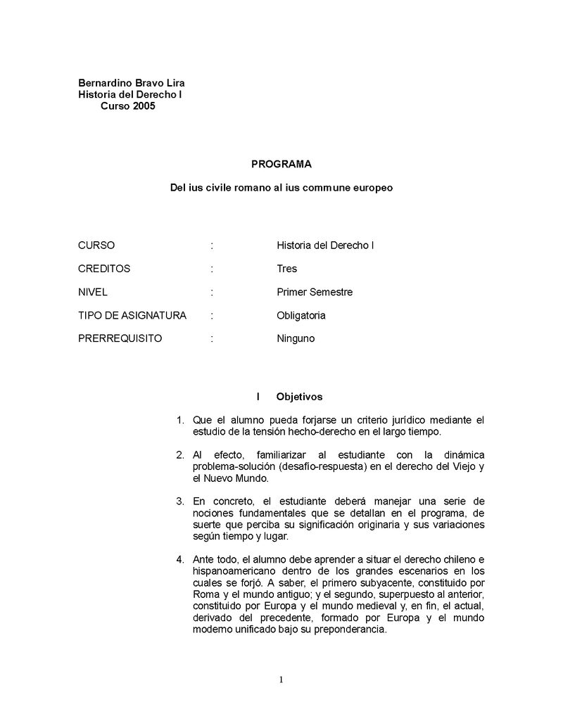 | Objetivos | Proceso general de la formación del Derecho occidental y de su recepción hasta el siglo XVI, a través del análisis de sus elementos formativos: elemento romano, canónico, germánico y Derecho común. | |