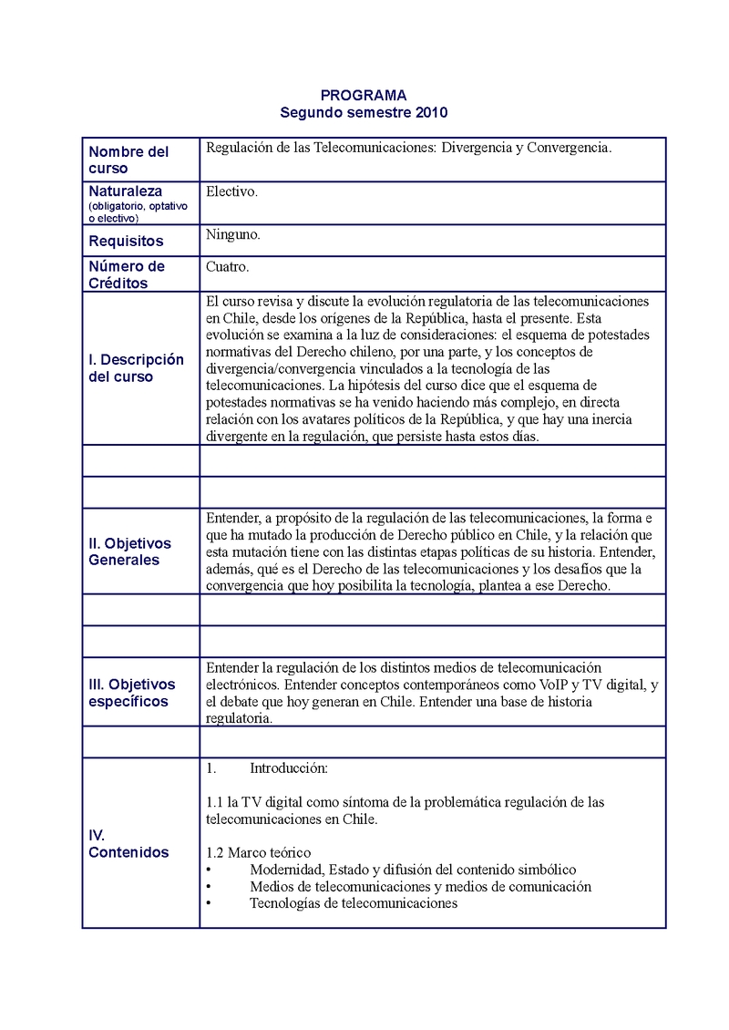 D121D01112-16 Regulación de las Telecomunicaciones: Divergencia y Convergencia 2010, Segundo Semestre