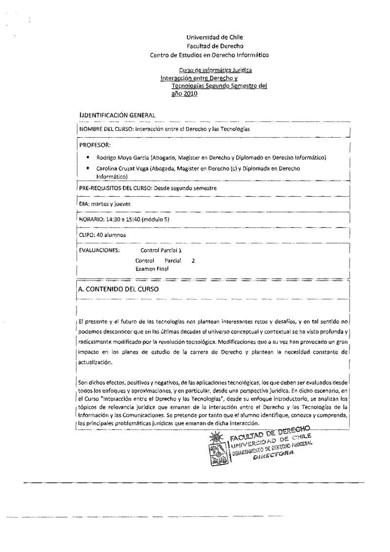 D124C0210-1 Informática Jurídica (Interacción entre Derecho y Tecnologías) 2010, Segundo Semestre