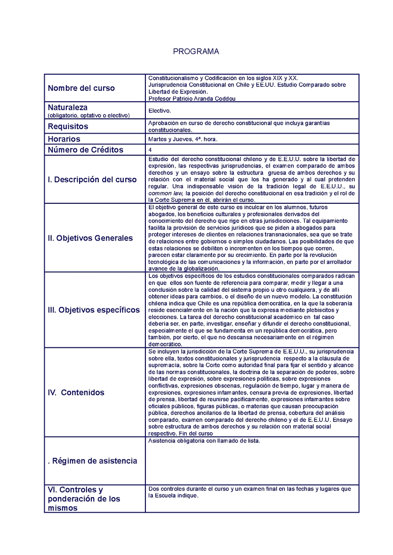 D121C0208-4 Constitucionalismo y Codificación en los Siglos XIX y XX (EE.UU y Chile) 2012, Segundo Semestre