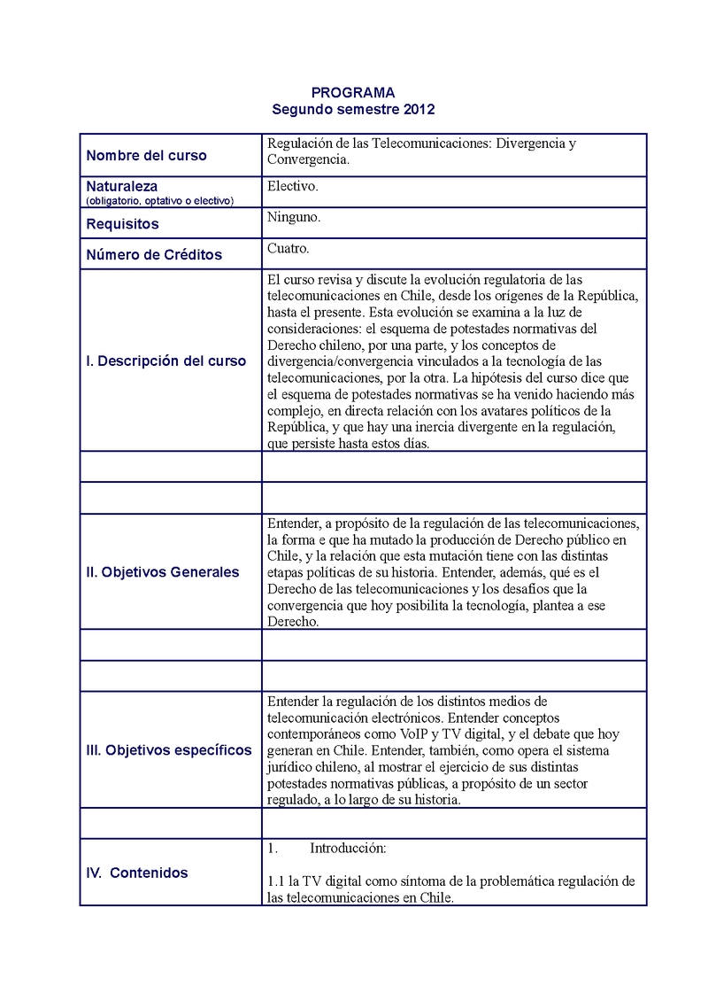 D121D01112-22 Regulación de las Telecomunicaciones: Divergencia y Convergencia 2012, Segundo Semestre