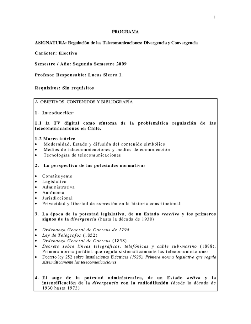 D121D01112-25 Regulación de las Telecomunicaciones: Divergencia y Convergencia 2013, Segundo Semestre