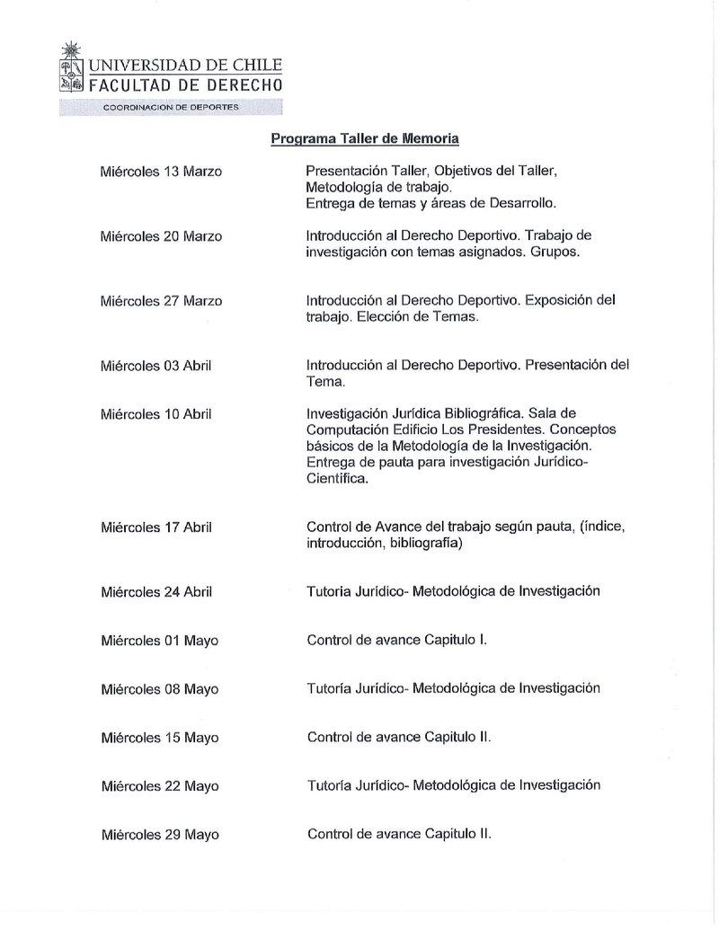 D127T0721-37 Taller el Derecho Deportivo Chileno, Analisis Critico e Investigaciones en Torno a su Aplicacion 2013, Segundo Semestre