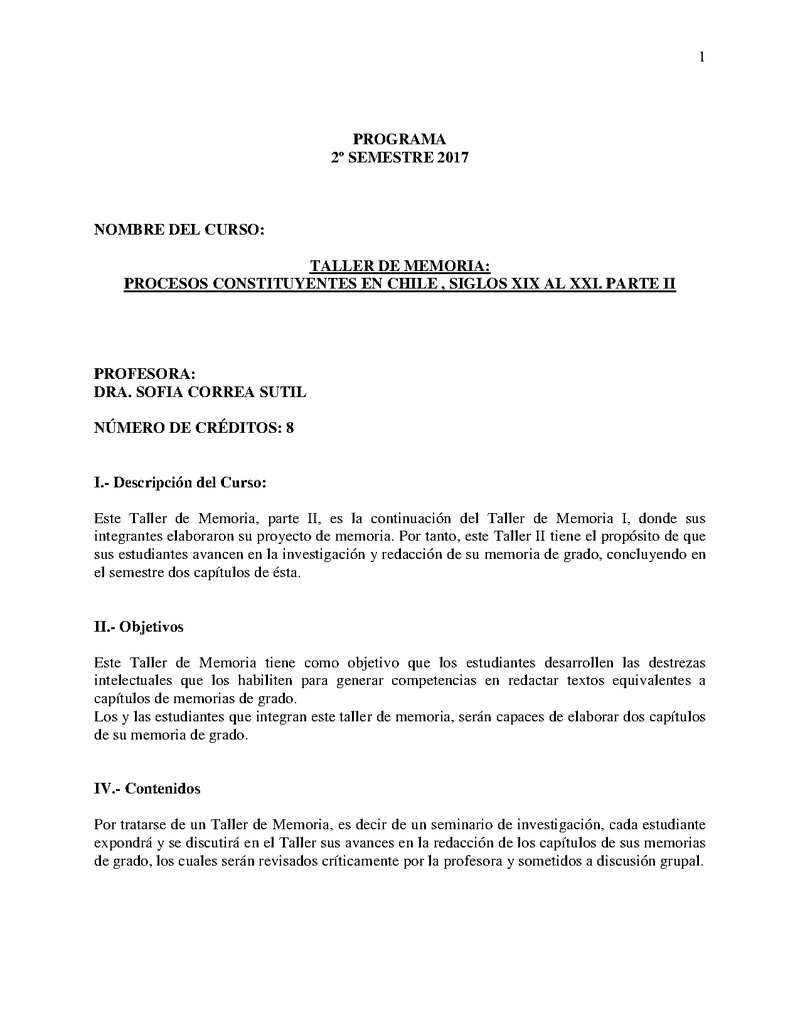 D121T07665-1 Taller Procesos Constituyentes en Chile, Siglos XIX al XXI. Parte II 2017, Segundo Semestre