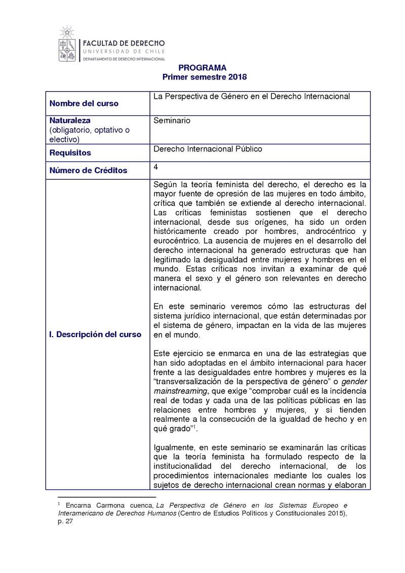D129S0935-1 Seminario: La perspectiva de Género en el Derecho Internacional 2018, Segundo Semestre