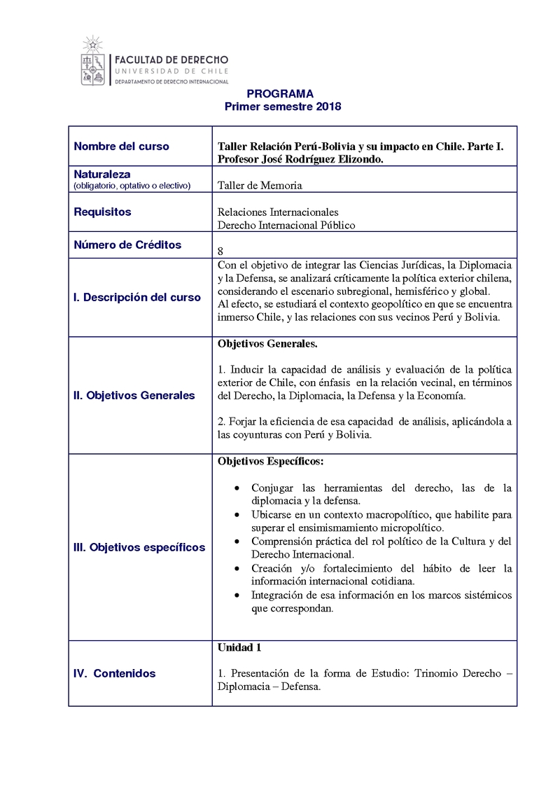D129T07710-1 Taller Relación Perú-Bolivia y su impacto en Chile. Parte I 2018, Segundo Semestre