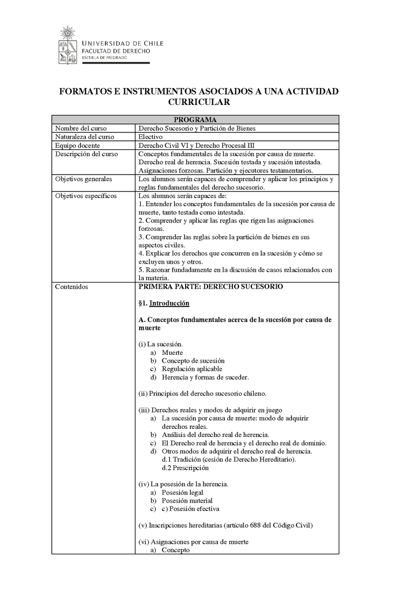 D122C0618-1 Derecho Civil VIII (Derecho Sucesorio y Partición de Bienes) 2019, Segundo Semestre