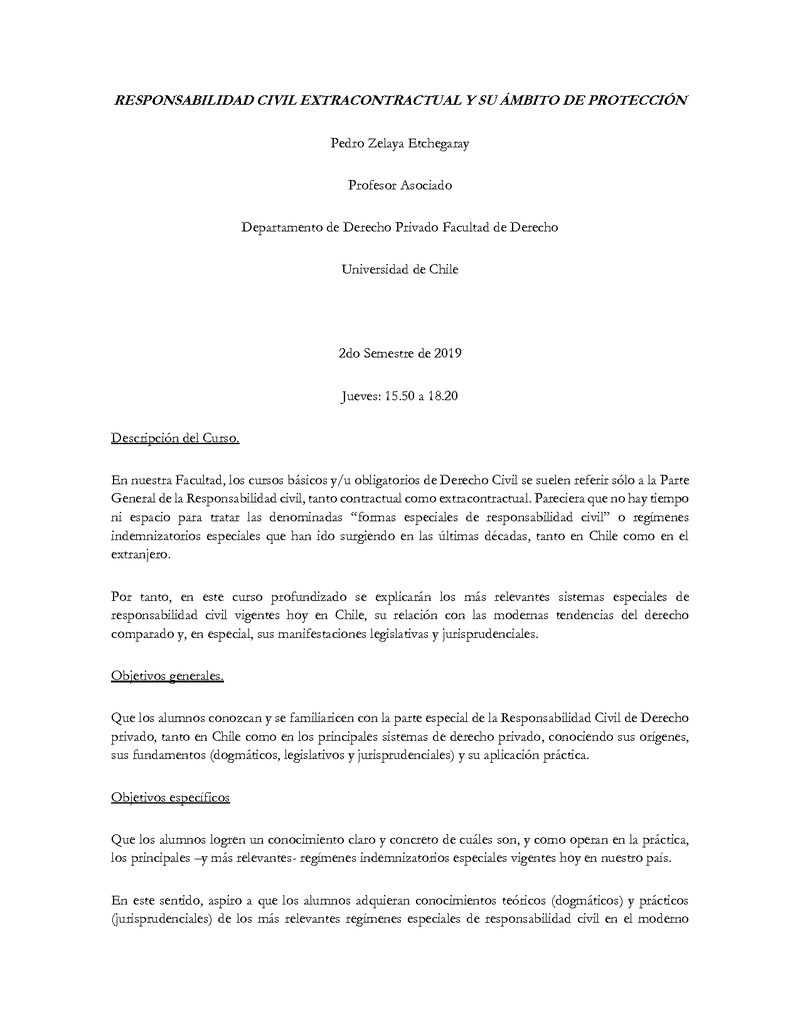 D122D0764-1 Responsabilidad Civil Extracontractual y su Ámbito de Protección 2019, Segundo Semestre