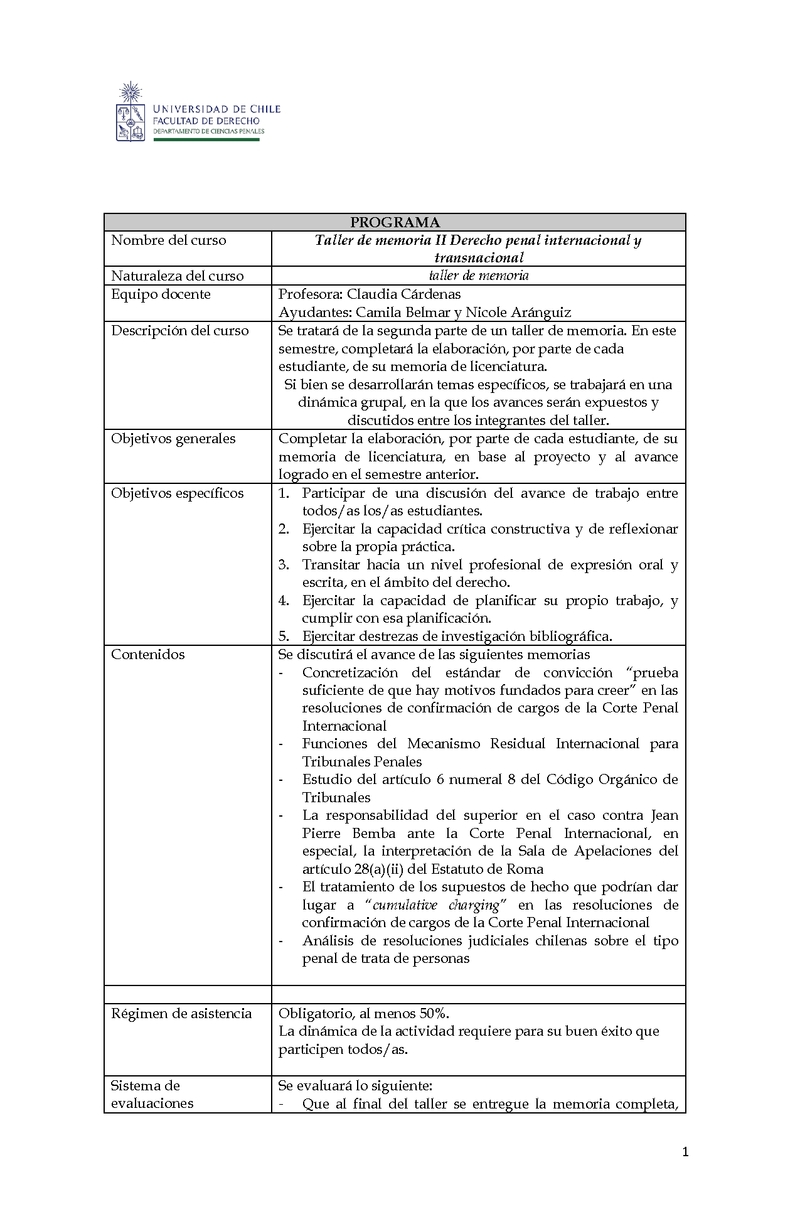 D125T07793-1 Taller Derecho penal internacional y transnacional. Parte II 2019, Segundo Semestre