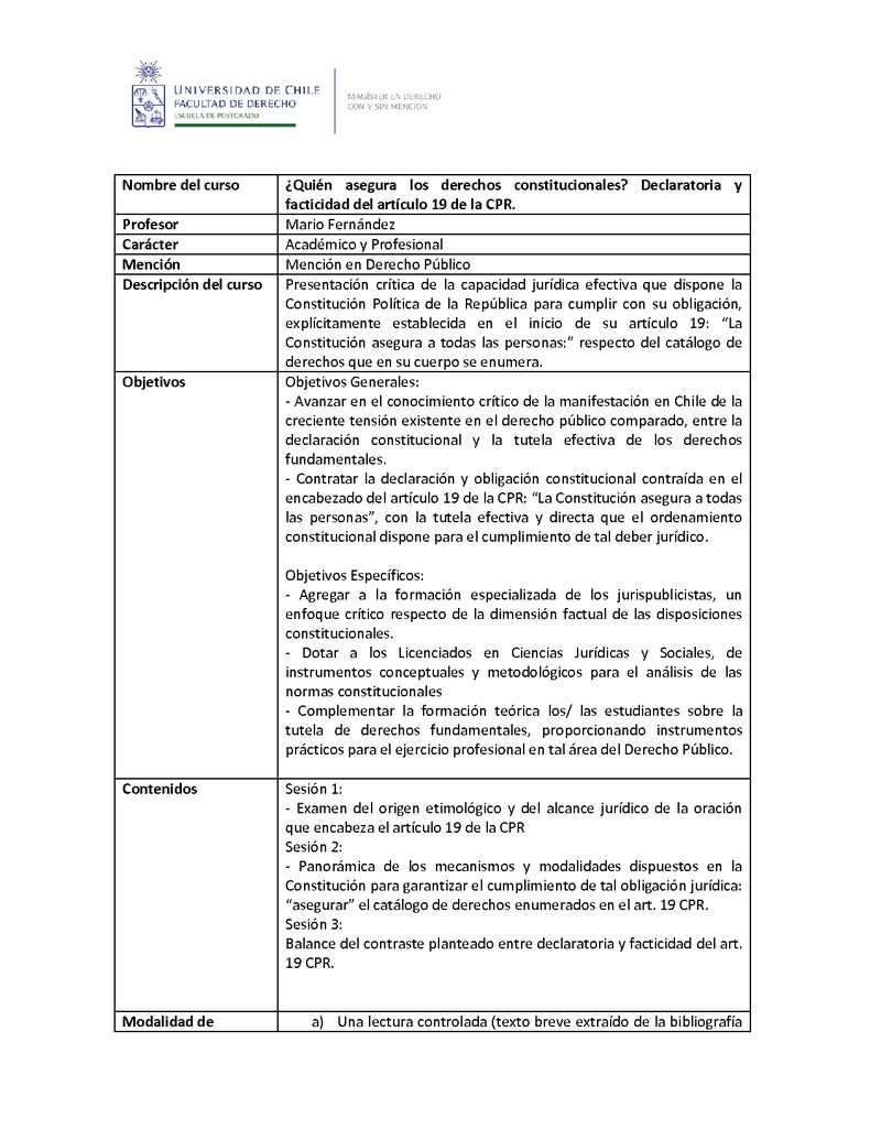 DMSPU012-1 ¿Quién asegura los derechos constitucionales? Declaratoria y facticidad del artículo 19 de la CPR 2019, Segundo Semestre