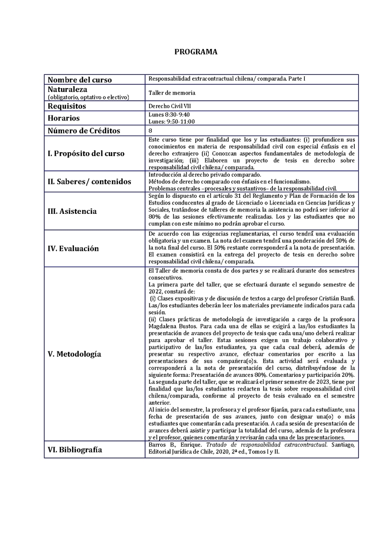 D122T07972-1 Taller Responsabilidad extracontractual chilena/comparada. Parte I 2022, Segundo Semestre