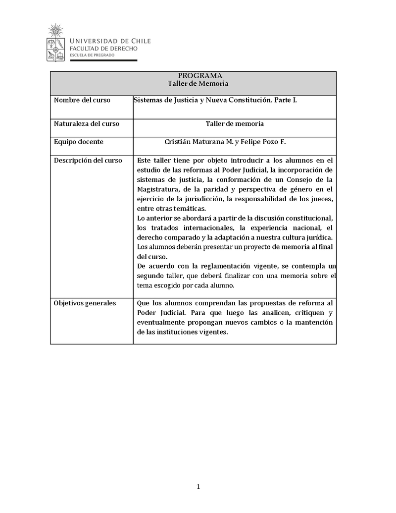 D124T07975-1 Taller Derecho Procesal, Sistemas de Justicia y Nueva Constitución. Parte I 2022, Segundo Semestre