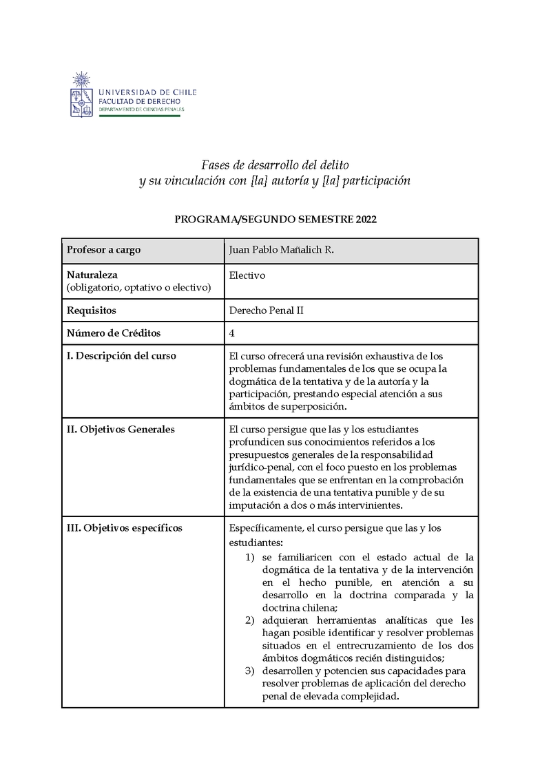 D125D0643-1 Fases del Desarrollo del Delito y su Vinculación con autoría y participación 2022, Segundo Semestre