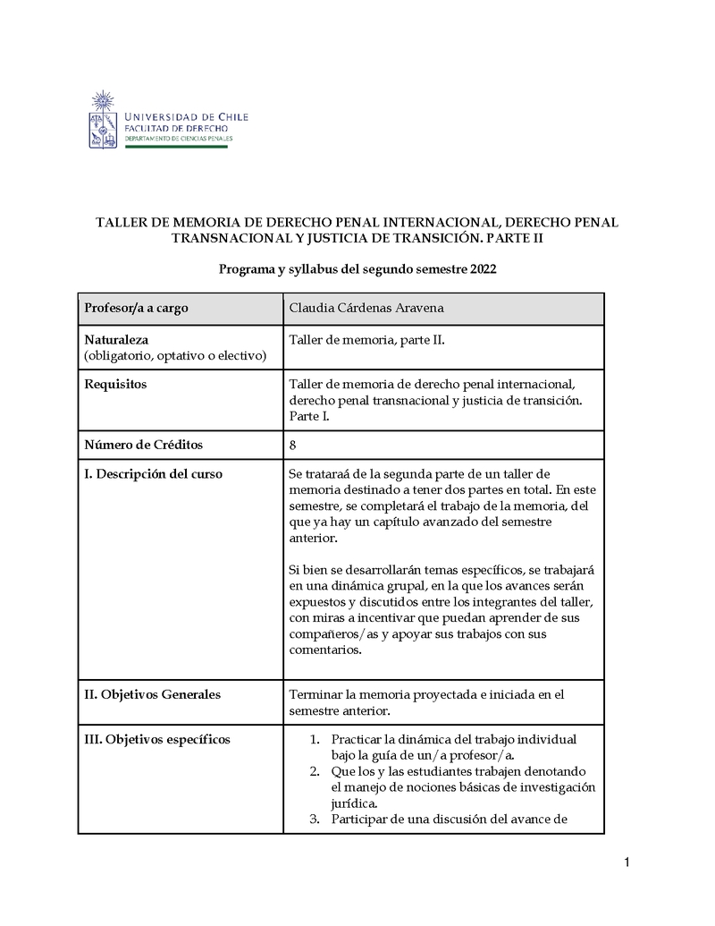 D125T07835-1 Taller Derecho Penal Internacional, Derecho Penal Transnacional y Justicia de Transición. Parte II 2022, Segundo Semestre
