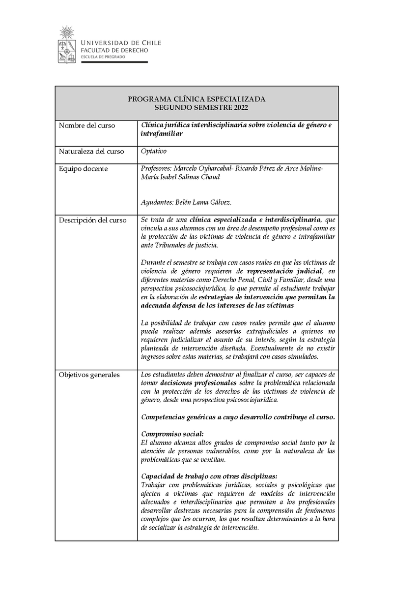 D170B0843R-1 Clínica Interdisciplinaria sobre Violencia de género e intrafamiliar 2022, Segundo Semestre