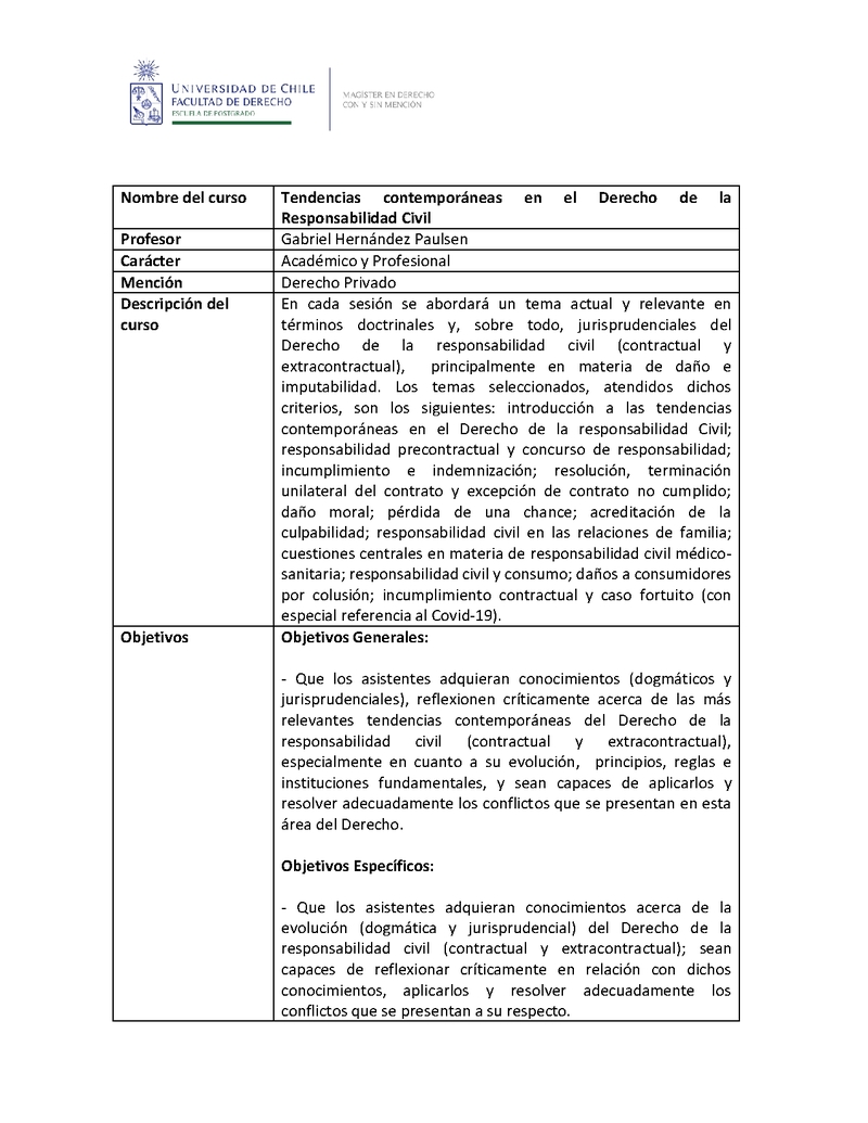 DMCPR005-1 Tendencias contemporáneas en el derecho de la responsabilidad civil 2022, Segundo Semestre