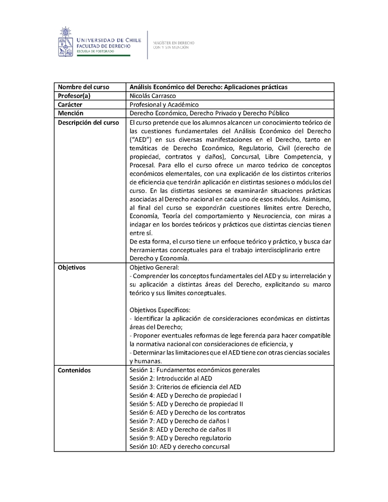 Institución Facultad de Derecho Facultad de Derecho