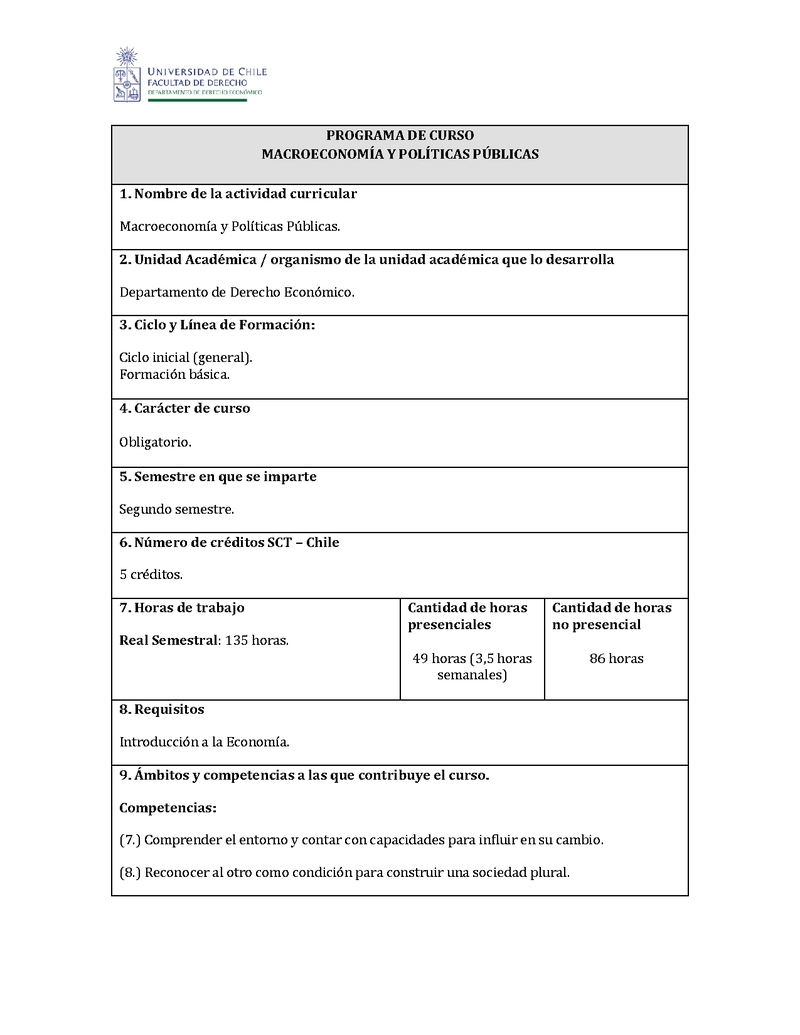 Descripción Programa del curso Macroeconomía y Políticas Públicas (malla nueva, 2022).