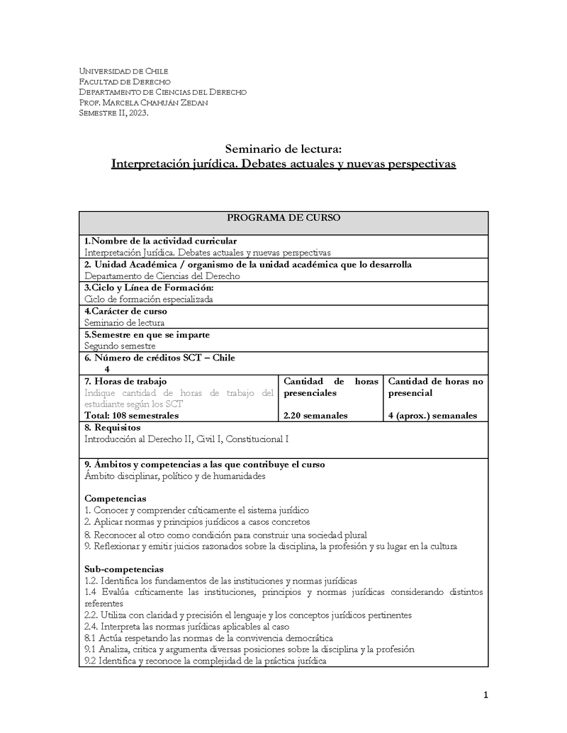 D121S0969-1 Seminario: Interpretación Jurídica. Debates y perspectivas actuales 2023, Segundo Semestre