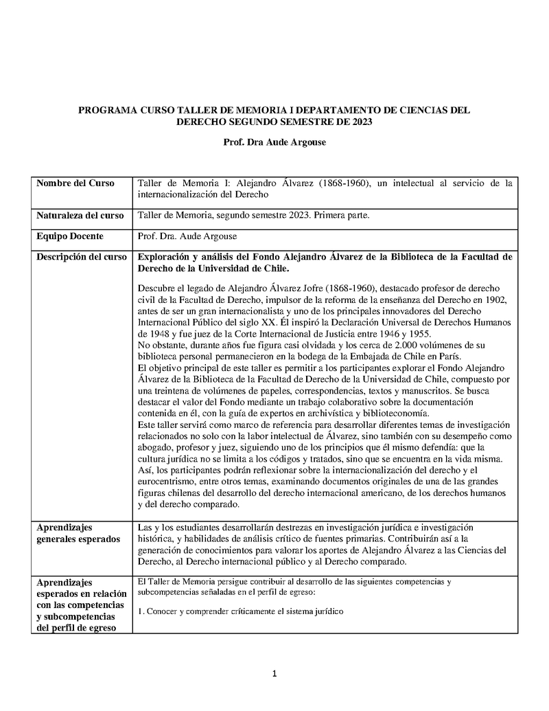D121T071010-1 Taller Alejandro Álvarez (1868-1960), un intelectual al servicio de la internacionalización del Derecho. Parte I 2023, Segundo Semestre