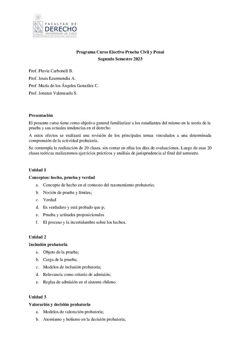 D124D0893-1 La Prueba Civil y Penal (Problemas fundamentales de la Prueba Jurídica) 2023, Segundo Semestre