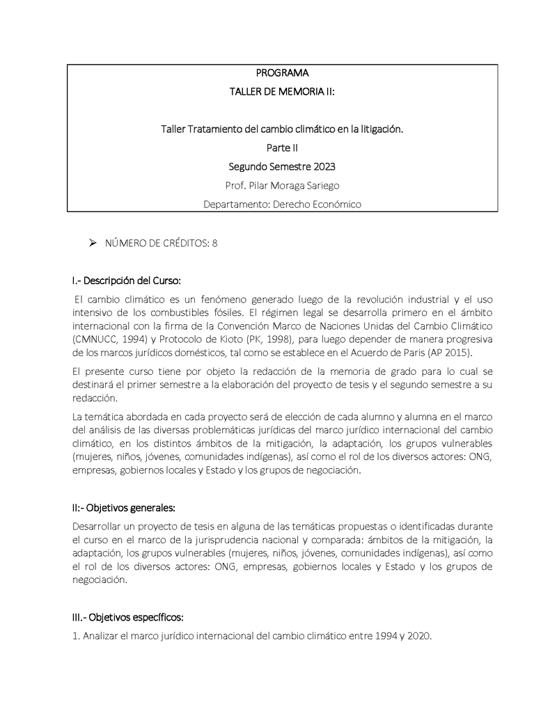 D126T071012-1 Taller Tratamiento del cambio climático en la litigación. Parte II 2023, Segundo Semestre