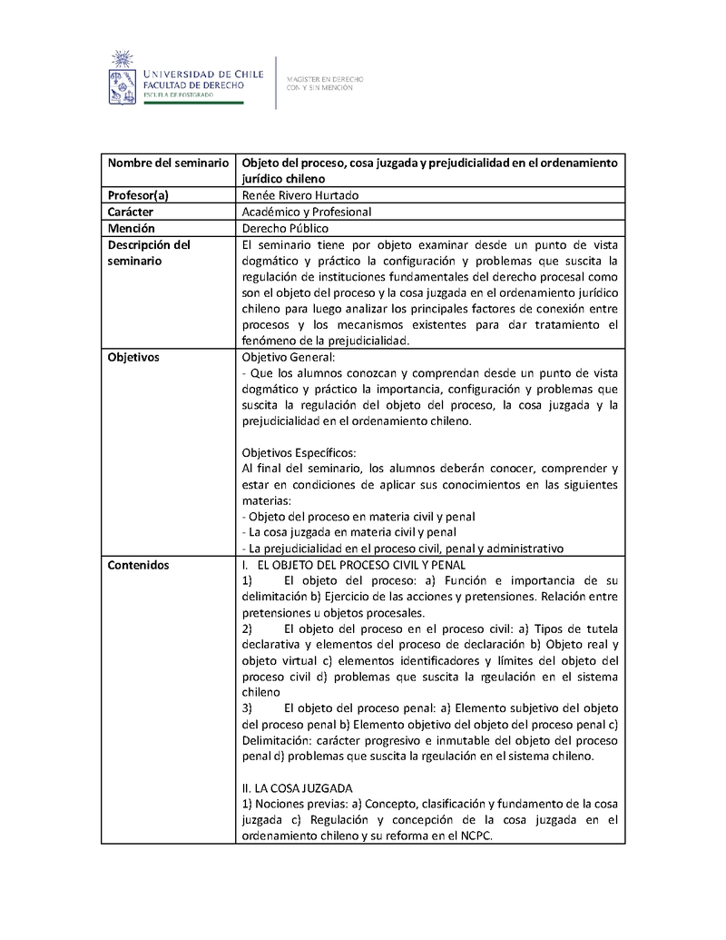 DMSPU22-1 Objeto del proceso, cosa juzgada y prejudicialidad en el ordenamiento jurídico chileno 2023, Segundo Semestre