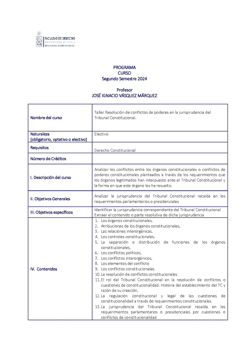 D123T071045-1 Taller Resolución de conflictos de poderes ante la jurisprudencia del Tribunal Constitucional. Parte I 2024, Segundo Semestre