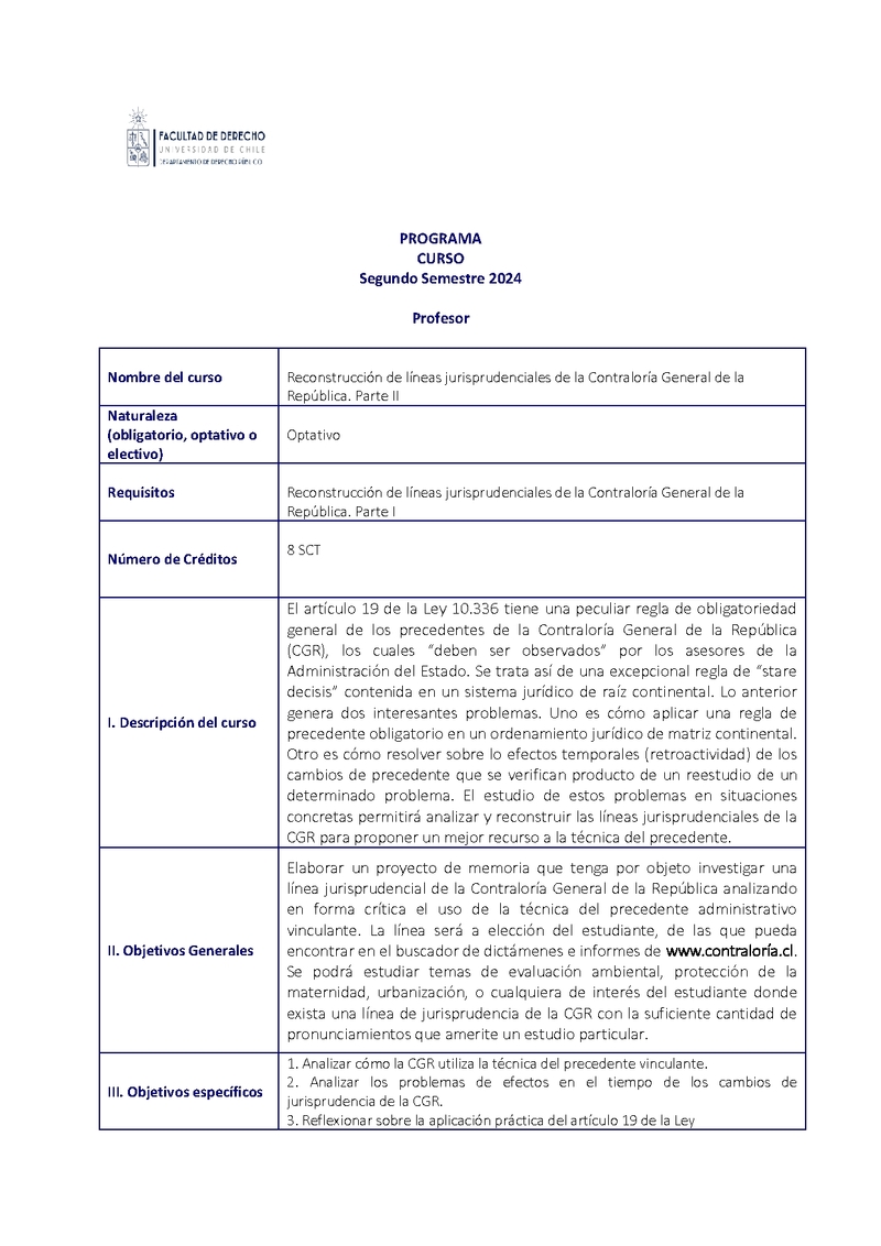 D123T071057-1 Taller Reconstrucción de líneas jurisprudenciales de la Contraloría General de la República. Parte II 2024, Segundo Semestre