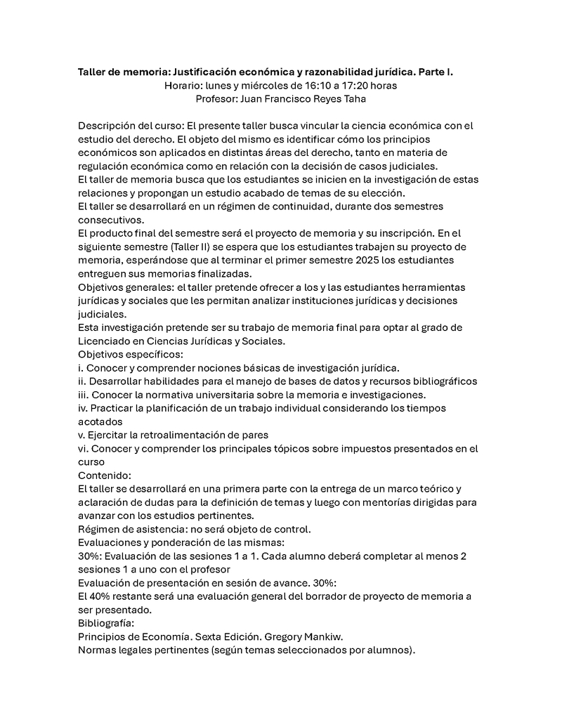 D126T071073-1 Taller Justificación económica y razonabilidad jurídica. Parte I 2024, Segundo Semestre