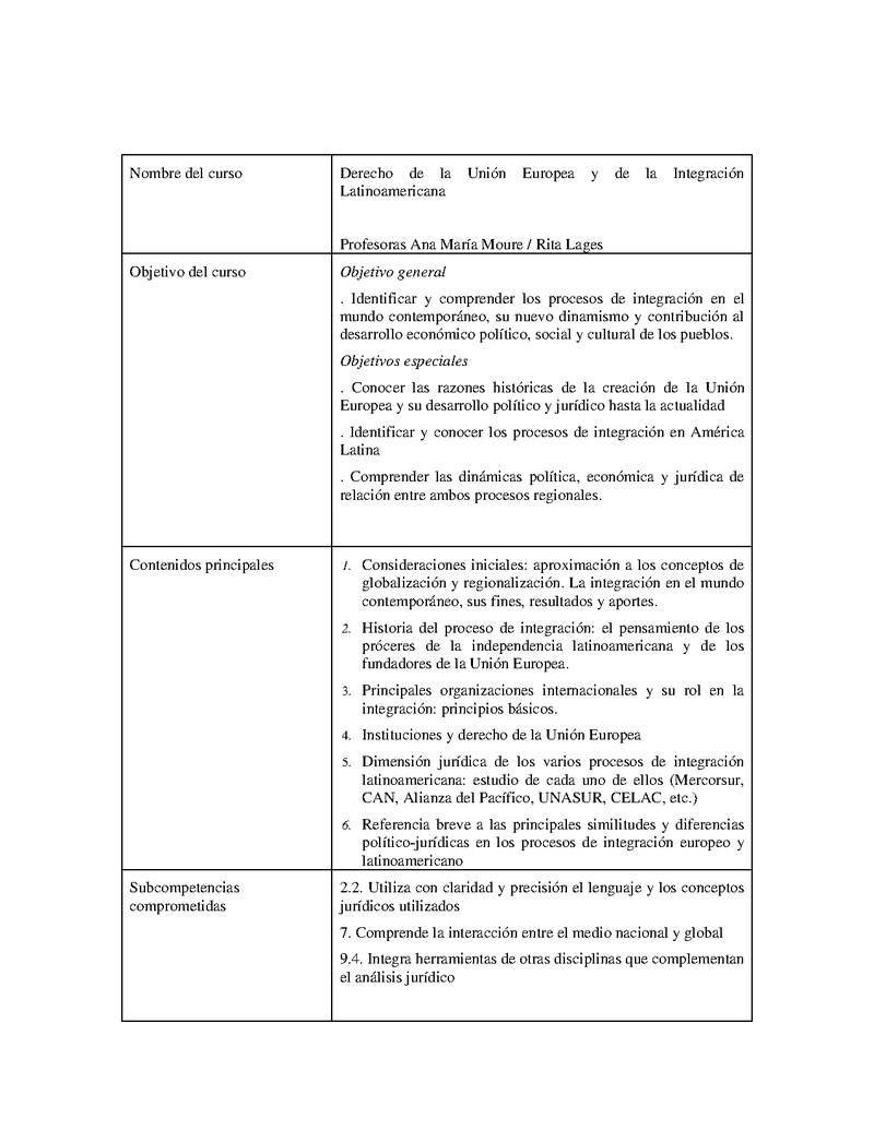 D129C07183-1 Derecho de la Integración Europea e Integración Latinoamericana 2024, Segundo Semestre