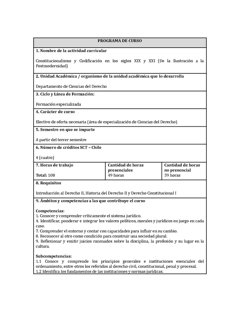 D221B0339B-1 Constitucionalismo y Codificación en los siglos XIX y XXI (De la Ilustración a la Postmodernidad) 2024, Segundo Semestre