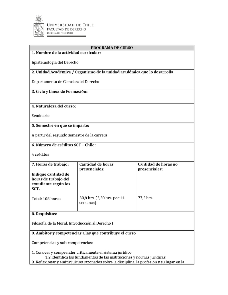 | Descripción | Programa del seminario de Epistemología del Derecho | |