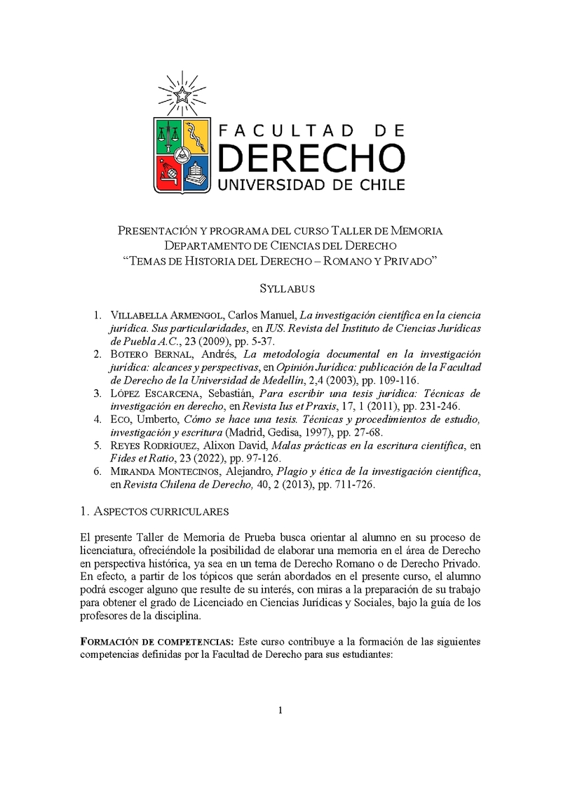 D121T071139-1 Taller Historia del Derecho Romano y Privado. Parte I 2025, Segundo Semestre