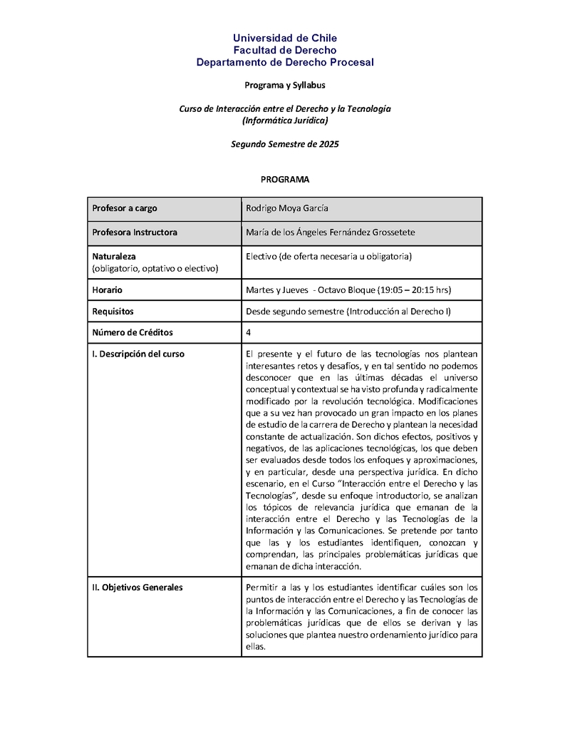 D124C0210-1 Informática Jurídica (Interacción entre Derecho y Tecnologías) 2025, Segundo Semestre