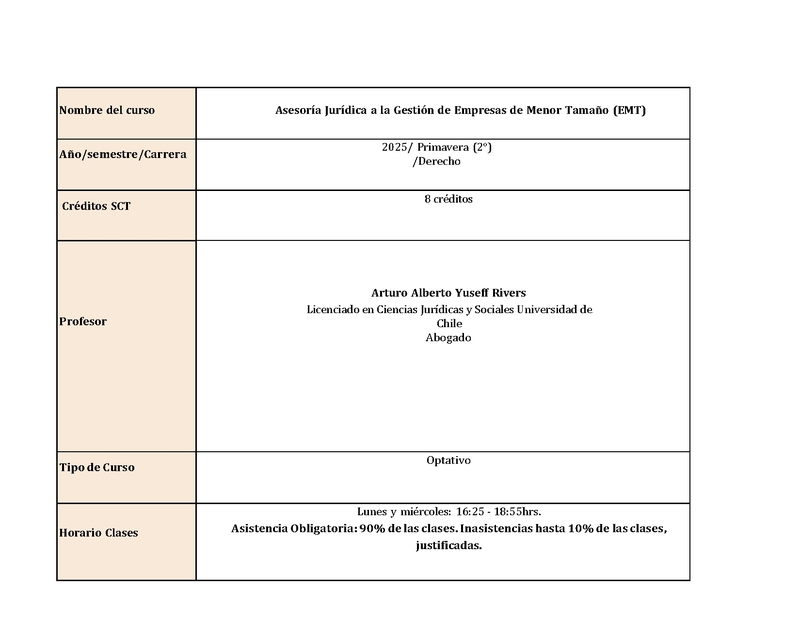 D170B0843C-1 Clínica de Asesoría Jurídica a la Gestión de Empresas 2025, Segundo Semestre