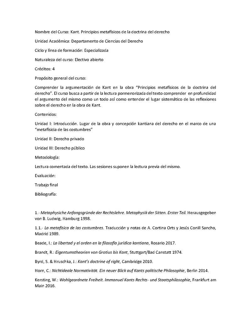 D221CA0831-1 Seminario: I. Kant. Principios metafísicos de la doctrina del derecho 2025, Segundo Semestre