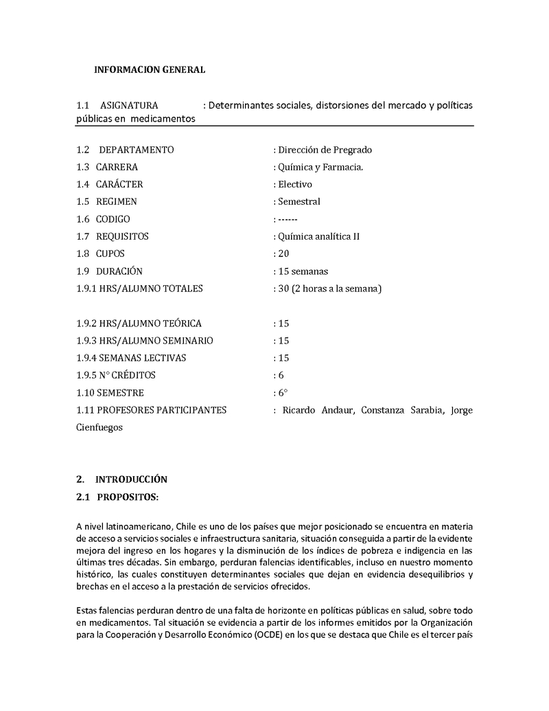 FCQF751-1 Determinantes sociales, distorsiones del mercado y políticas públicas en medicamentos 2015, Segundo Semestre