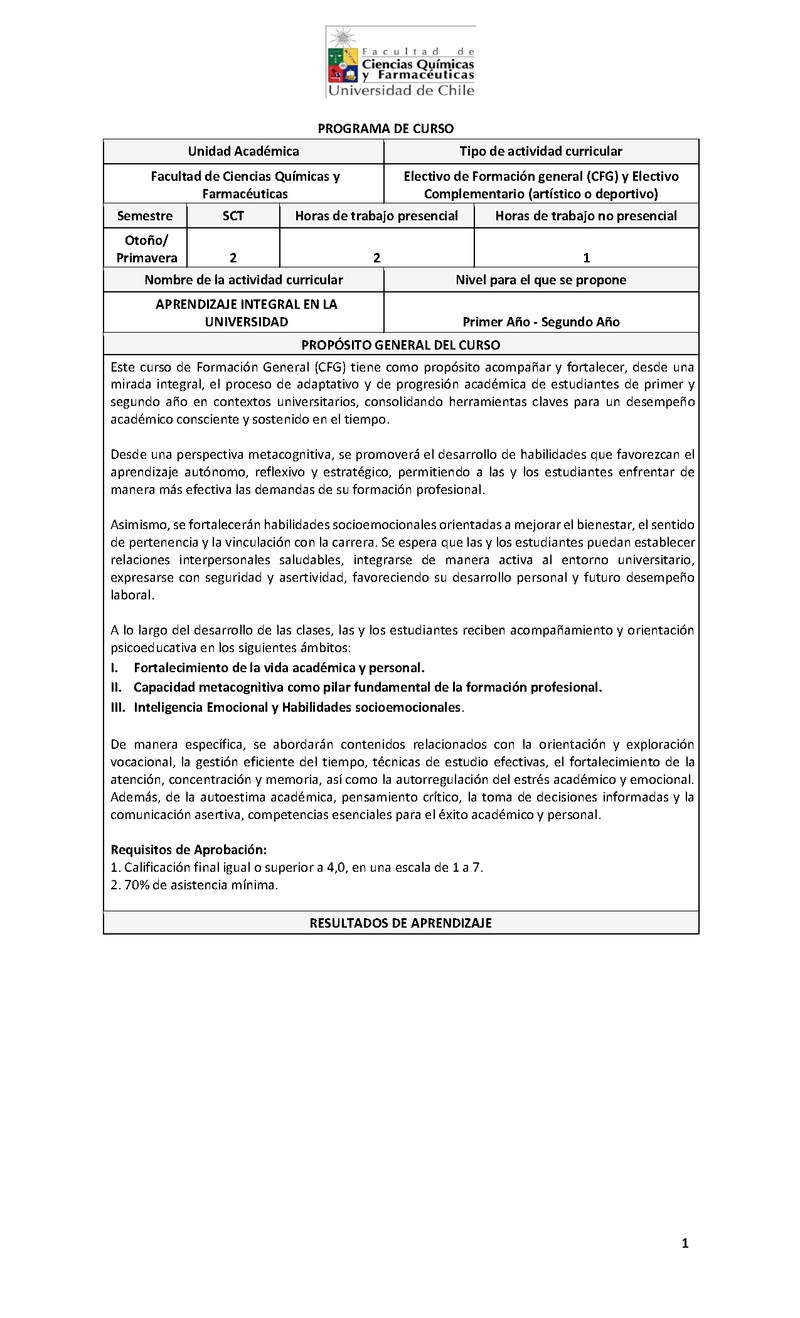 | Descripción | Estimad@s estudiantes, a continuación se encuentra el programa del curso Aprendizaje Integral en la Universidad. | |