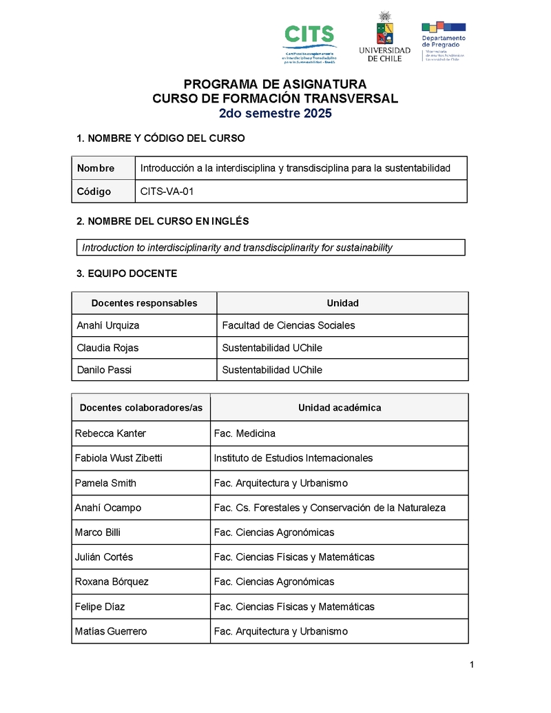 CITS-VA-01-1 Introducción a la interdisciplina y transdisciplina para la sustentabilidad 2025, Segundo Semestre