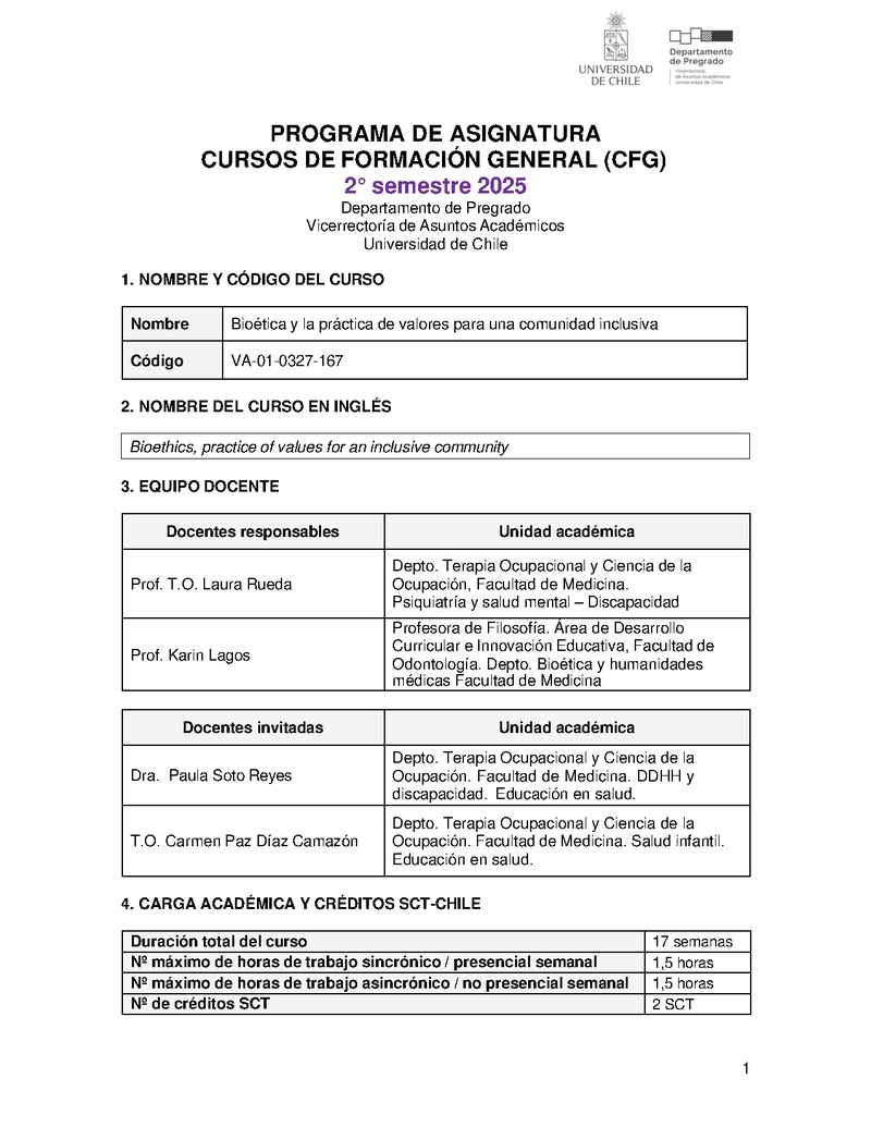 VA-01-0327-167-1 Bioética: práctica de valores para una comunidad inclusiva 2025, Segundo Semestre