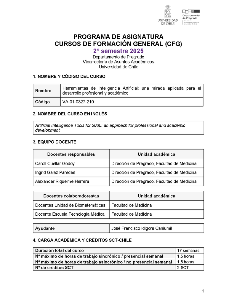 VA-01-0327-210-1 Herramientas de Inteligencia Artificial: una mirada aplicada para el desarrollo profesional y académico 2025, Segundo Semestre