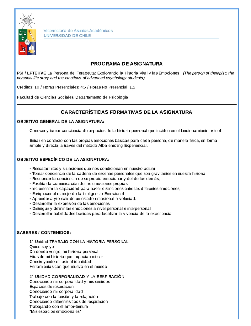 PSI-LPTEHVE-1 La Persona del Terapeuta: Explorando la Historia Vital y las Emociones 2013, Segundo Semestre