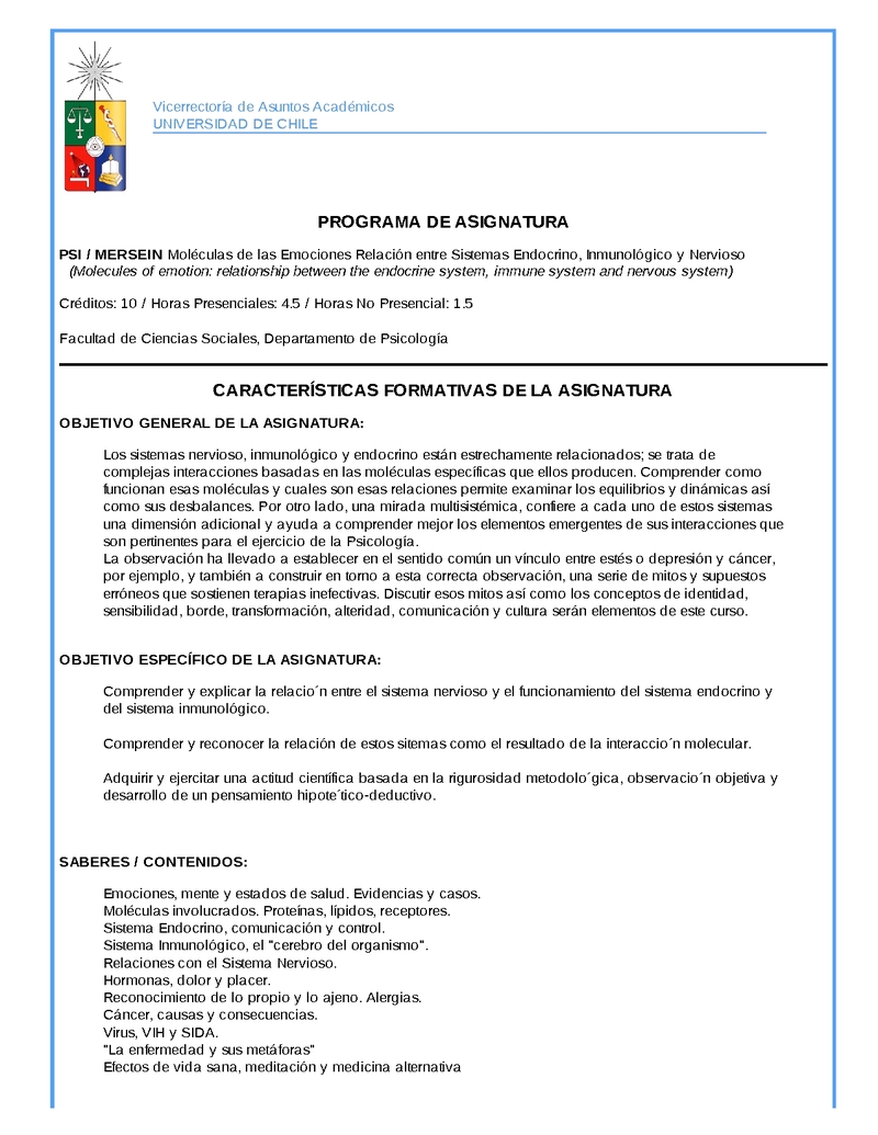 PSI-MERSEIN-1 Moléculas de las Emociones Relación entre Sistemas Endocrino, Inmunológico y Nervioso 2013, Segundo Semestre