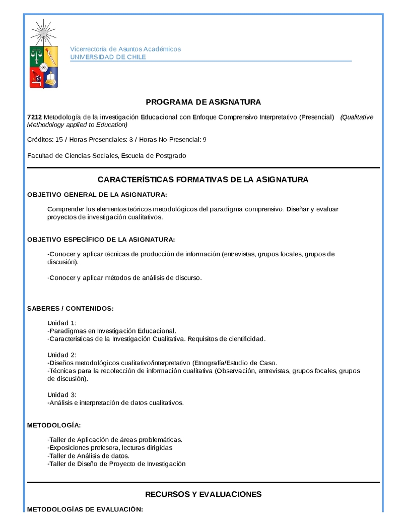 7212-2 Metodología de la Investigación Educacional con Enfoque Comprensivo Interpretativo 2014, Primer Semestre