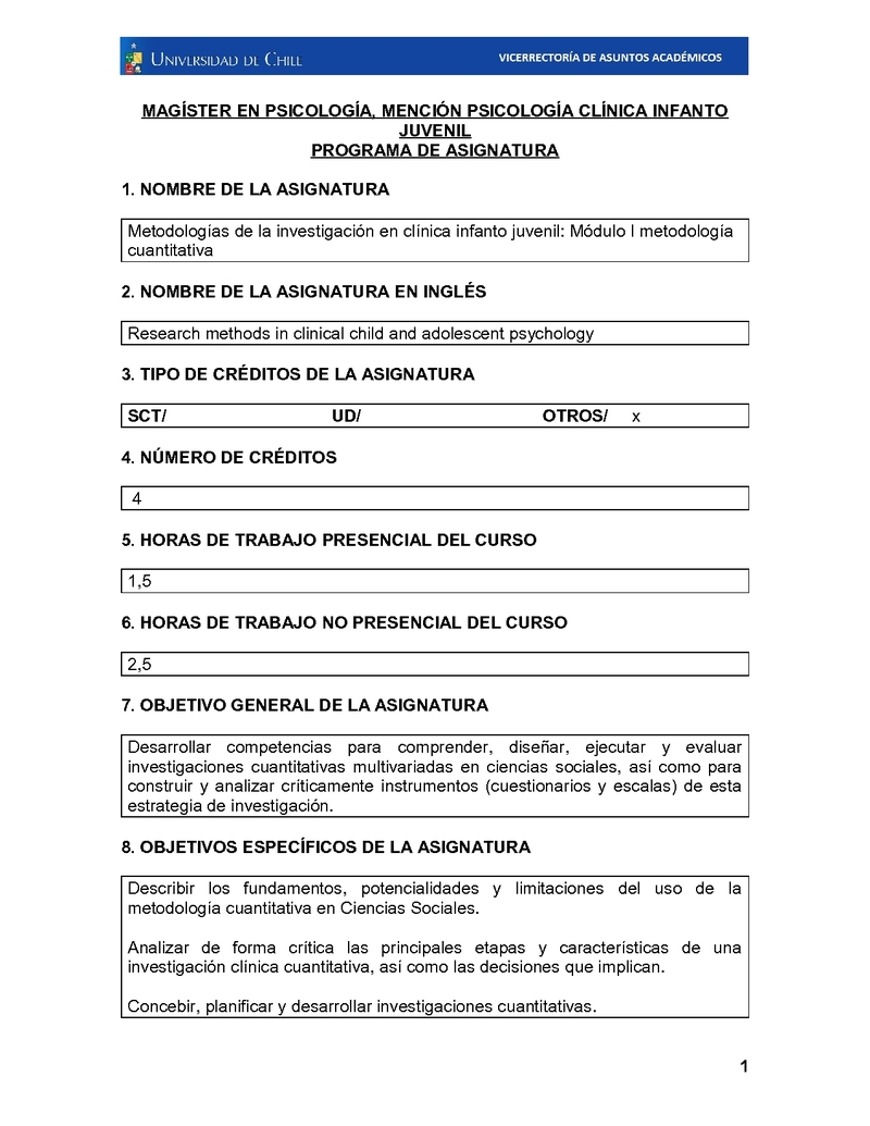 Unidad de Investigación I: Metodologías de la Investigación en Clínica Infanto - Juvenil