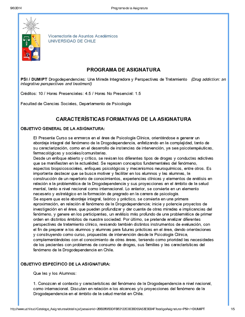 PS02039-1 Drogodependencia: Una Mirada Integradora y Perspectivas de Tratamiento 2014, Segundo Semestre